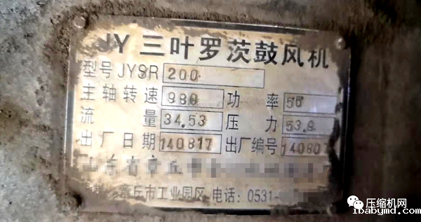 因长时使用,原鼓风机铭牌已布满灰尘