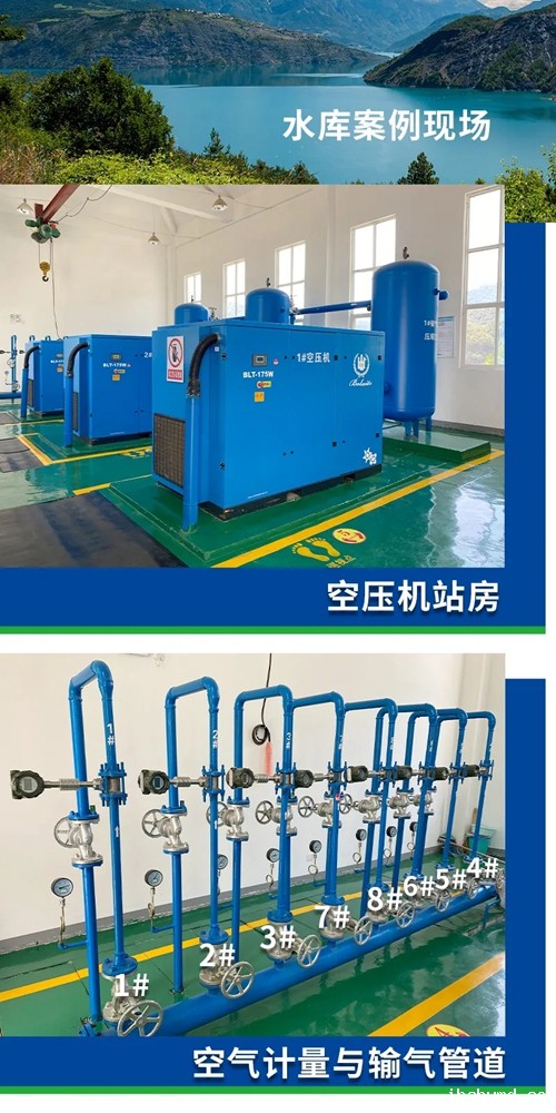 本案例中,西安某水库是应用“扬水曝气”技术比较早的水库之一,得知水库用气需求后,博莱特通过多部门的合作,在客户现场实地勘测,深入学习和了解水库“扬水曝气”的用气要求。最终,博莱特提供的空压机解决方案脱颖而出,携手客户一同探索水资源可持续创新之道。