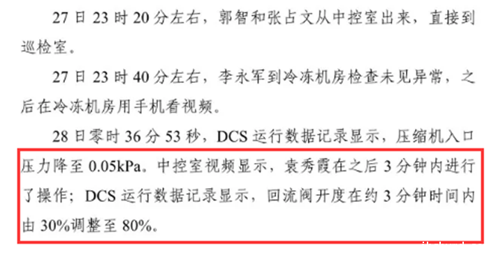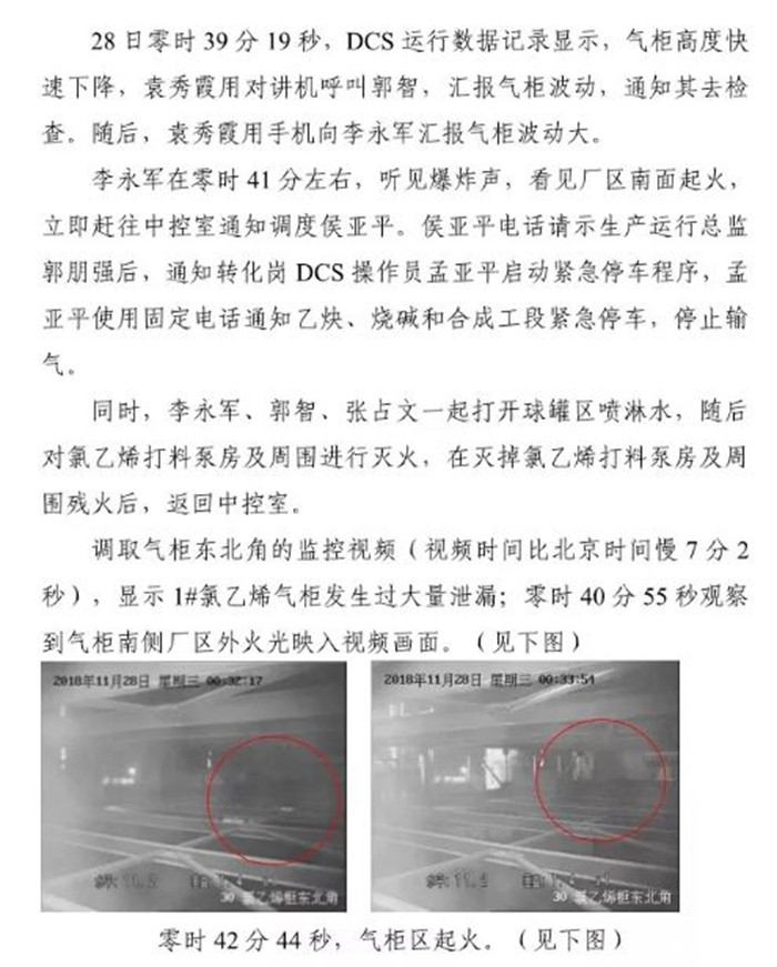 盛华化工公司违反《气柜维护检修规程》(SHS01036-2004)第2.1条和《盛华化工公司低压湿式气柜维护检修规程》的规定,聚氯乙烯车间的1#氯乙烯气柜长期未按规定检修,事发前氯乙烯气柜卡顿、倾斜,开始泄漏,压缩机入口压力降低,操作人员没有及时发现气柜卡顿,仍然按照常规操作方式调大压缩机回流,进入气柜的气量加大,加之调大过快,氯乙烯冲破环形水封泄漏,向厂区外扩散,遇火源发生爆燃。
