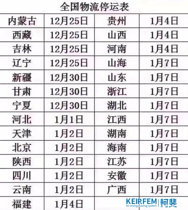 2020年全国物流提前停运表:空压机备货只有30天了!