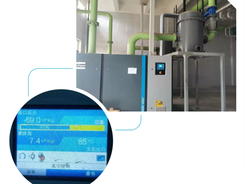 客户原先使用的液环式真空泵/定频油螺杆真空泵,使用真空度约为300