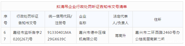 嘉兴市市场监督管理局吊销听证公告