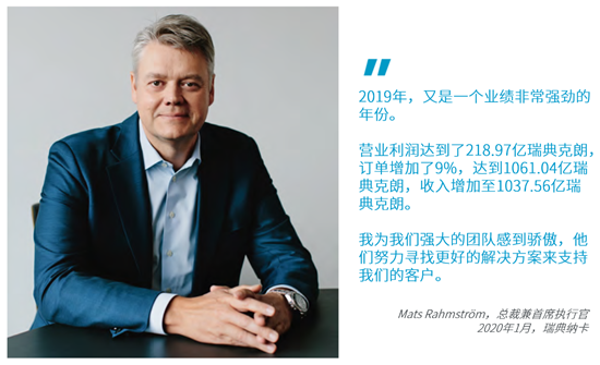 2019年,阿特拉斯·科普柯集团收入、订单和营业利润均创历史新高,通过收购加入集团的新公司数量超过以往任何一年。