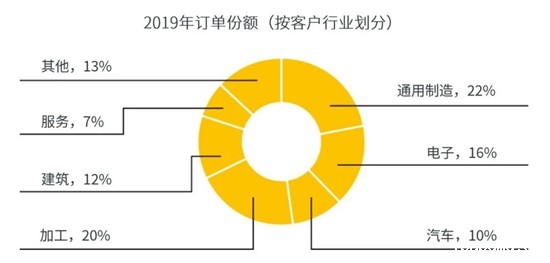 阿特拉斯·科普柯的客户是100%的B2B,基本涵盖了全球所有行业。无论是在土木工程、运输、食品饮料、医疗、电子、基础设施还是加工行业,阿特拉斯·科普柯集团创新的压缩机、真空解决方案、发电机、泵、电动工具和装配系统随处可见。2019年,通用制造、加工、电子、建筑、汽车、服务等行业订单份额是最多的几个行业。
