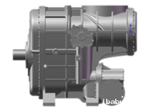 1、壳体的两侧设计成一种迷宫式流体散热结构,可以通过鼓风机系统的冷却油经由这种散热结构来冷却壳体。