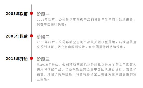 一直以来,阿特拉斯·科普柯均以深度落实全球化与本土化为经营方针,非常重视中国这一全球最大的单一市场,旗下的移动空压机业务线更是对融入中国市场规划了三个发展阶段。