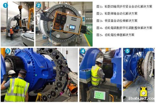 从大容量机组装配和运维难度越来越大的挑战出发,阿特拉斯·科普柯与风电领头企业共同拟定了研发课题,着力突破风电行业大螺栓装配工具缺乏的瓶颈,目前已经成功研发并推出了拉伸拧紧一体系统。该系统通过整合拉伸和扭矩拧紧工艺,将普通大扭矩工具无法准确拧紧的目标螺栓,在进行自动拉伸后,再进行自动拧紧。从螺栓拉长量,实际夹紧力,终拧螺母静态扭矩等多方面进行自动化的操作和数据追溯,大大提高了大功率机组的装配可靠性,成功的突破了装配瓶颈。