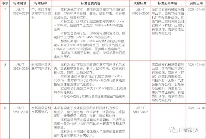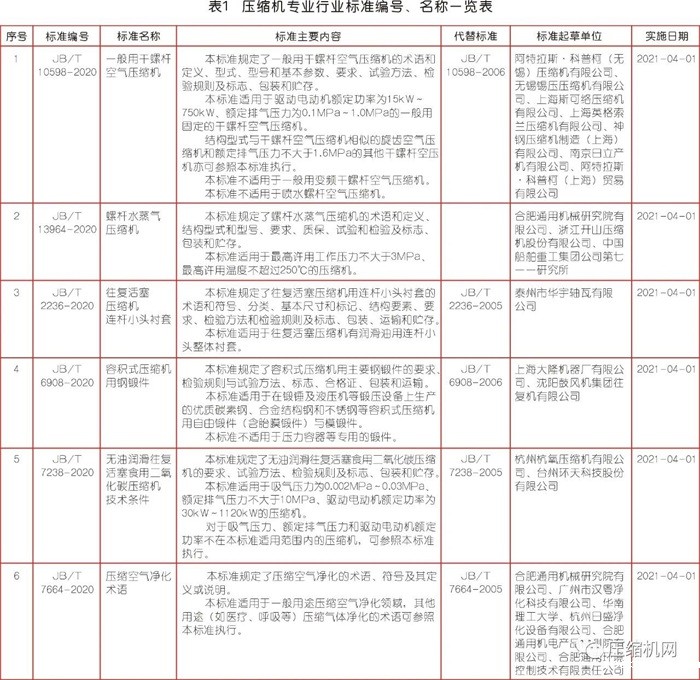 日前,工信部发布了2020年第37号中华人民共和国工业和信息化部公告,由公告批准发布了8项压缩机专业行业标准,实施日期为2021年4月1日。截至9月15日,2020年由压标委归口制修订的行业标准共发布8项。具体标准名称、标准编号及标准起草单位如表1。