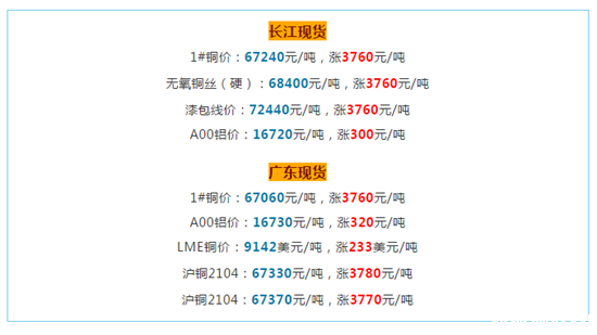 本周一,国内外铜价继续暴涨。截至发稿,沪铜主力合约涨停,LME铜涨超2%站上9000美元关口,创下2011年9月以来新高。