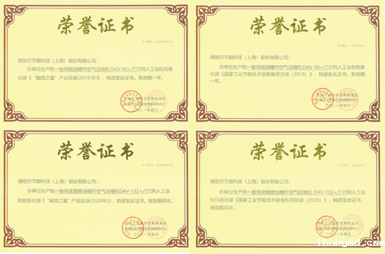 会议发布了2020年《国家工业节能技术装备推荐目录》及《“能效之星”产品目录》入围企业名单,并为2019、2020年入围企业发放能效标识及相关证书,德耐尔节能科技(上海)股份有限公司生产的一般用喷油螺杆空气压缩机DAV-90+/7、一般用变频喷油螺杆空气压缩机DAV-132+/7双双入围。