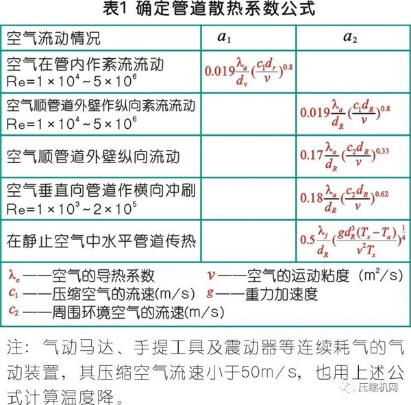 对于非热绝缘的金属管道,若不考虑传热面上的污染对散热的影响,在给确定管道长度上的压缩空气的温度降低: