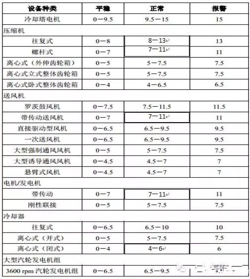 对于不上述范围内的设备,下表 “通频振动烈度的速度标准”可以提供相应的振动评价方法。