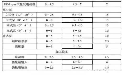 3. 设备没有安装隔振装置(对已安装隔振装置的设备,报警值要提高 30%~50%)。