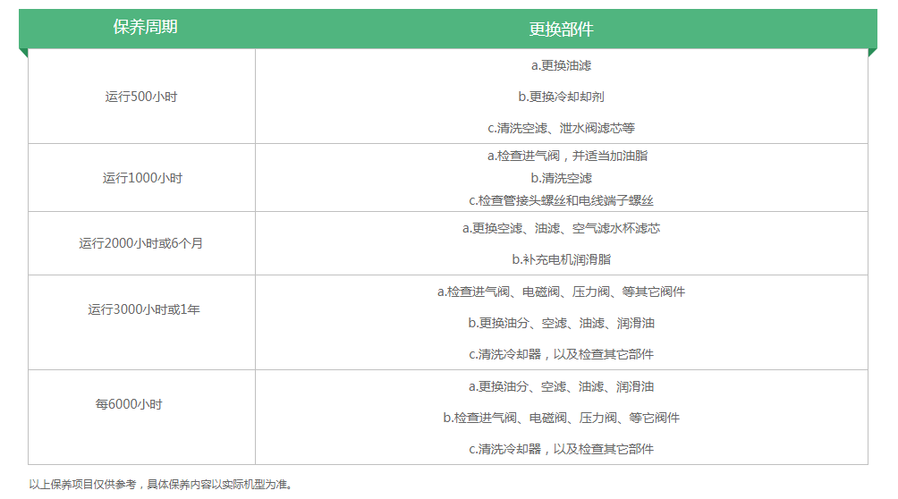空压机保养周期表: