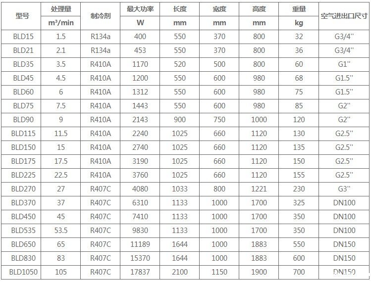 l 进气压力:BLD15-225/BLR13-260:13bar ;BLD270-1050:10bar