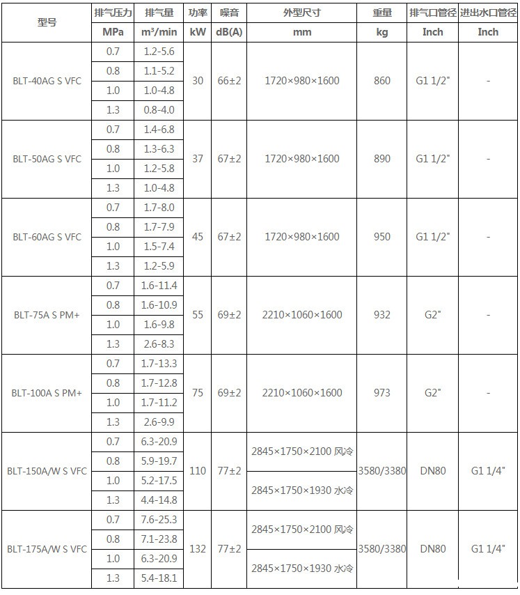 BLT PM+永磁变频压缩机 全新上市的阿特拉斯·科普柯主机与高效永磁电机的完美结合,成熟的分体式直联驱动系统,无一体式永磁变频压缩机拆装不便易退磁等弊端,追求极致高效的同时,保证压缩机高可靠性。